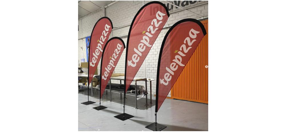 Los Fly Banners, conocidos también como banderas de playa (Beach Flags), son un formato de comunicación y publicidad que consiste en un mástil flexible que da sujeción a una bandera textil impresa, sustentado en un soporte o base que lo afianza sobre una superficie. Son uno de los soportes más efectivos por su diseño dinámico y gran visibilidad. Fabricamos Fly banners personalizados adaptados para cada ocasión que se le pueda presentar a tu cliente.