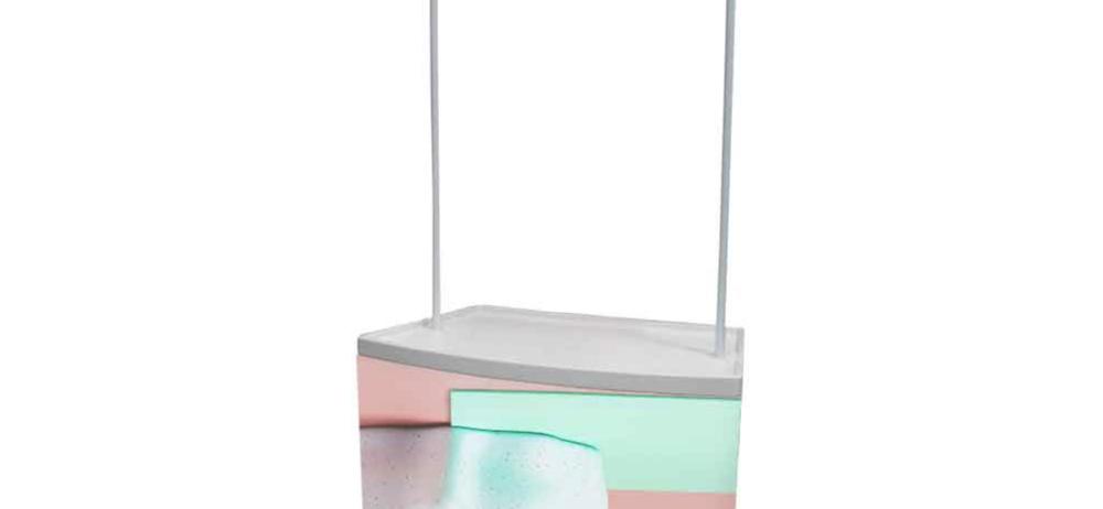 Mostrador promocional en PVC blanco, ligero y portátil, utilizable en interior. Cartela, mástiles y balda incluida. Ideal para espacios de venta al detalle, eventos puntuales o promociones.
