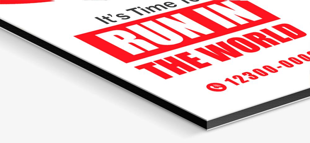 Impresión directa en metacrilato rígido, disponible en acabado transparente o blanco opal translúcido.